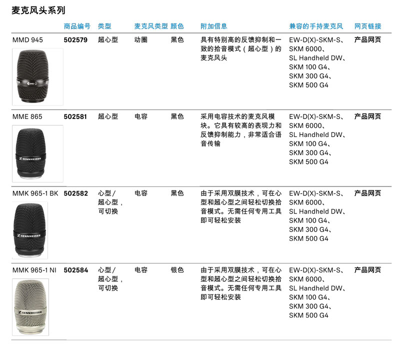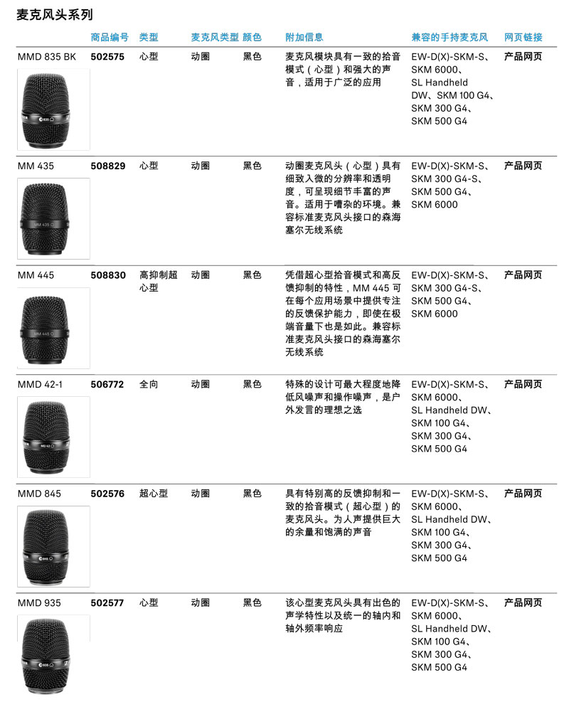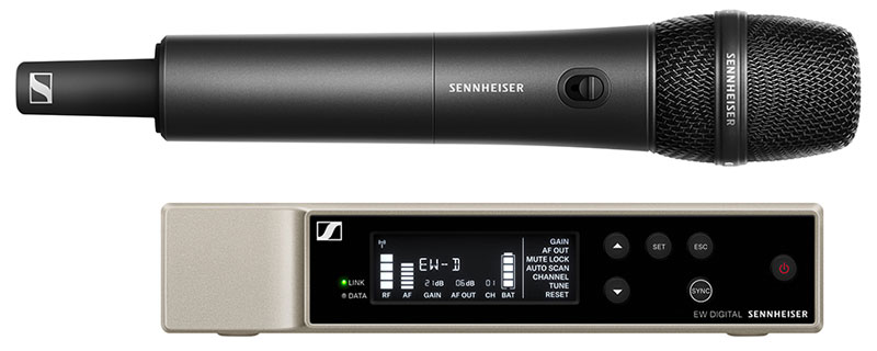 一体化数字无线手持套件,配备Sennheiser的优良产品e 835话筒头,适合用于唱歌或讲话。